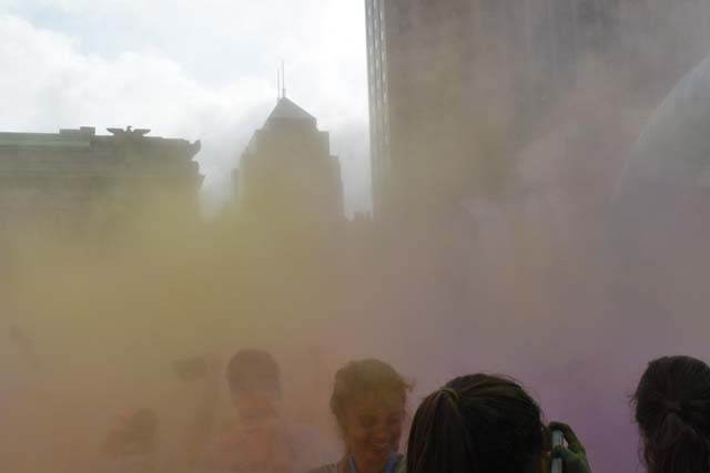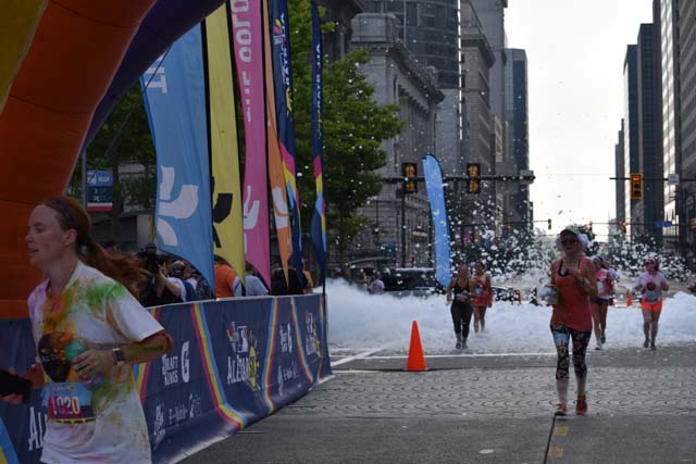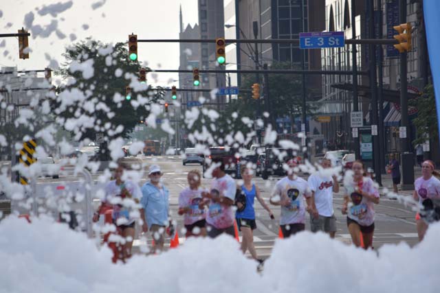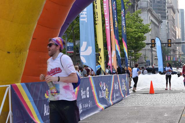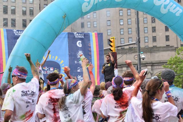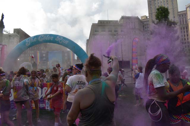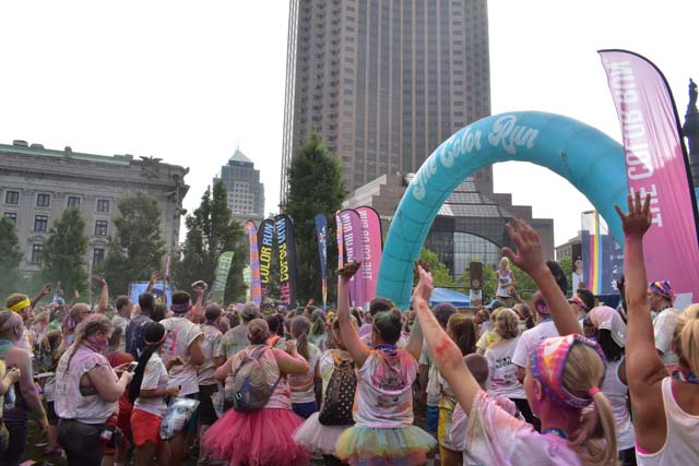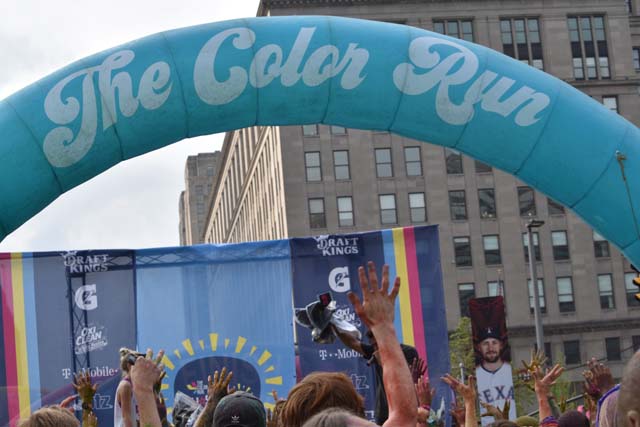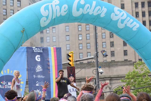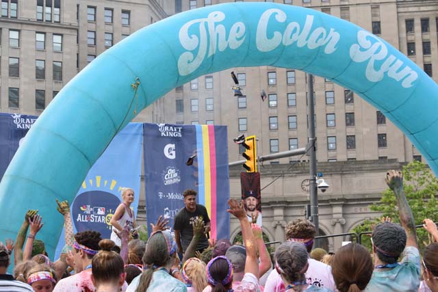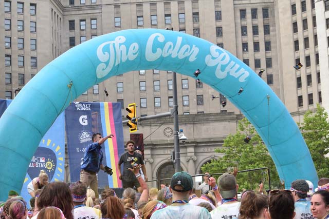 The run started at Voinovich Bicentennial Park with a course that brought them through the city before ending in Public Square. The finish line along Superior Avenue was covered with inflatable archways and a giant bubble making machine. Runners were greeted with a celebration on the Gund Foundation Green which included a live DJ, color throws, food and beer. The Color Run is coined as "The Happiest 5K on the Planet," because it isn't meant to be a competitive race. Public Square was the perfect host site for The Color Run, to help kick off All Star week activities across the city.